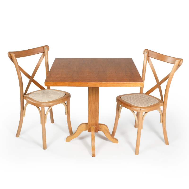 BISTRÔ FERRO ALTA QUADRADA COM BAQUETA ALTA QUADRADA COM TAMPO DE MADEIRA